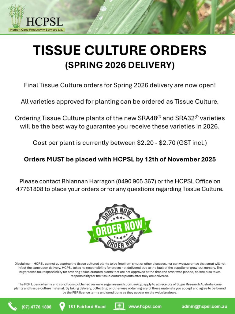 Orders MUST be placed with HCPSL by the 12th of November 2025.